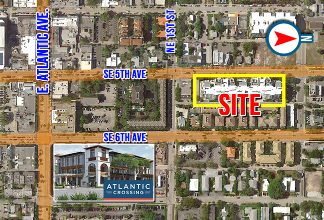 On the east side of NE 5th Avenue (aka Federal Highway) and one (1) block north of Atlantic Avenue, this property is extremely well located with great visibility to the busy Federal Highway.  Atlantic Avenue has continually been named one of the best downtowns in America and continues to attract many national and regional retailers and restaurants.
